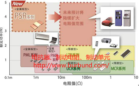 這些厚膜低阻值電阻(LTR系列/UCR系列),由于其更高的額定功率,使將以往產品(MCR/低阻值系列)替換為更小型封裝成為可能,是有助于PCB板小型化的產品。 <采用金屬電阻體材料的低阻值產品> 12539;電阻體采用金屬的低阻值產品的結構與厚膜低阻值產品技術完全不同,電阻體采用厚度為幾十μm~幾mm左右的電阻體金屬材料。常州博邦電氣是專業生產電抗器,鋁殼電阻,制動電阻,制動單元的大型廠家,利用蝕刻和機加工等各種加工技術將這種電阻體材料成型,從而實現目標電阻值與特性。金屬低阻值產品與相同尺寸的厚膜低阻值產品相比,具有可保證高額定功率和高精度電阻溫度系數的特征。另外,為了在0.2 mΩ到10 mΩ左右的極低電阻值范圍使用較厚的電阻體金屬,一般采用將電阻體本身作為貼片成型的方法。 在額定功率4W以上的范圍,Burbund品牌正在擴充覆蓋0.2 mΩ~3.0 mΩ電阻值范圍的PSR系列。PSR系列采用Burbund品牌獨有的焊接技術接合電阻體金屬和銅電極,實現了具備高散熱性和熱容量的結構。博邦電氣是專業生產電抗器,鋁殼電阻,制動電阻,制動單元的大型廠家,(圖6)另外,通過大型銅電極確保了散熱性,實現了最高達5W的高額定功率。其特征是通過按電阻值選擇最佳的電阻體金屬,實現了高精度的電阻溫度系數。